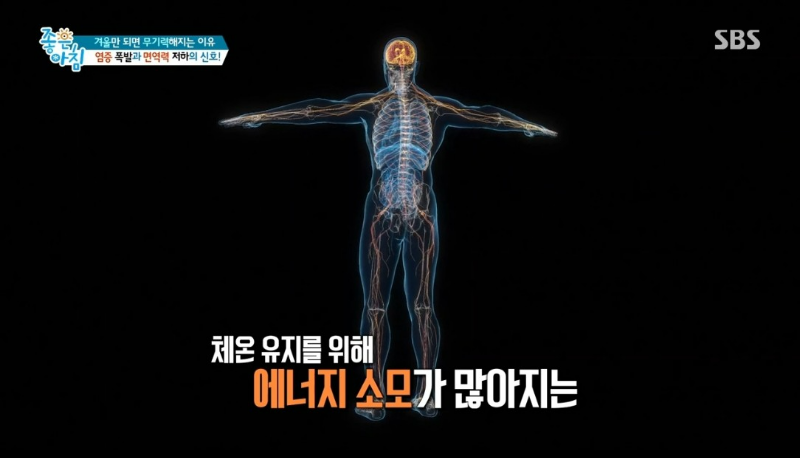 겨울철에 기온이 떨어지면서, 일교차도 커지고 실내외 온도차도 커집니다. 이러한 온도 변화로 인해 우리 몸 속에서는 혈관이나 근육, 신경 등에서 체온을 유지하기 위해서 에너지 소모가 많아지게 됩니다.